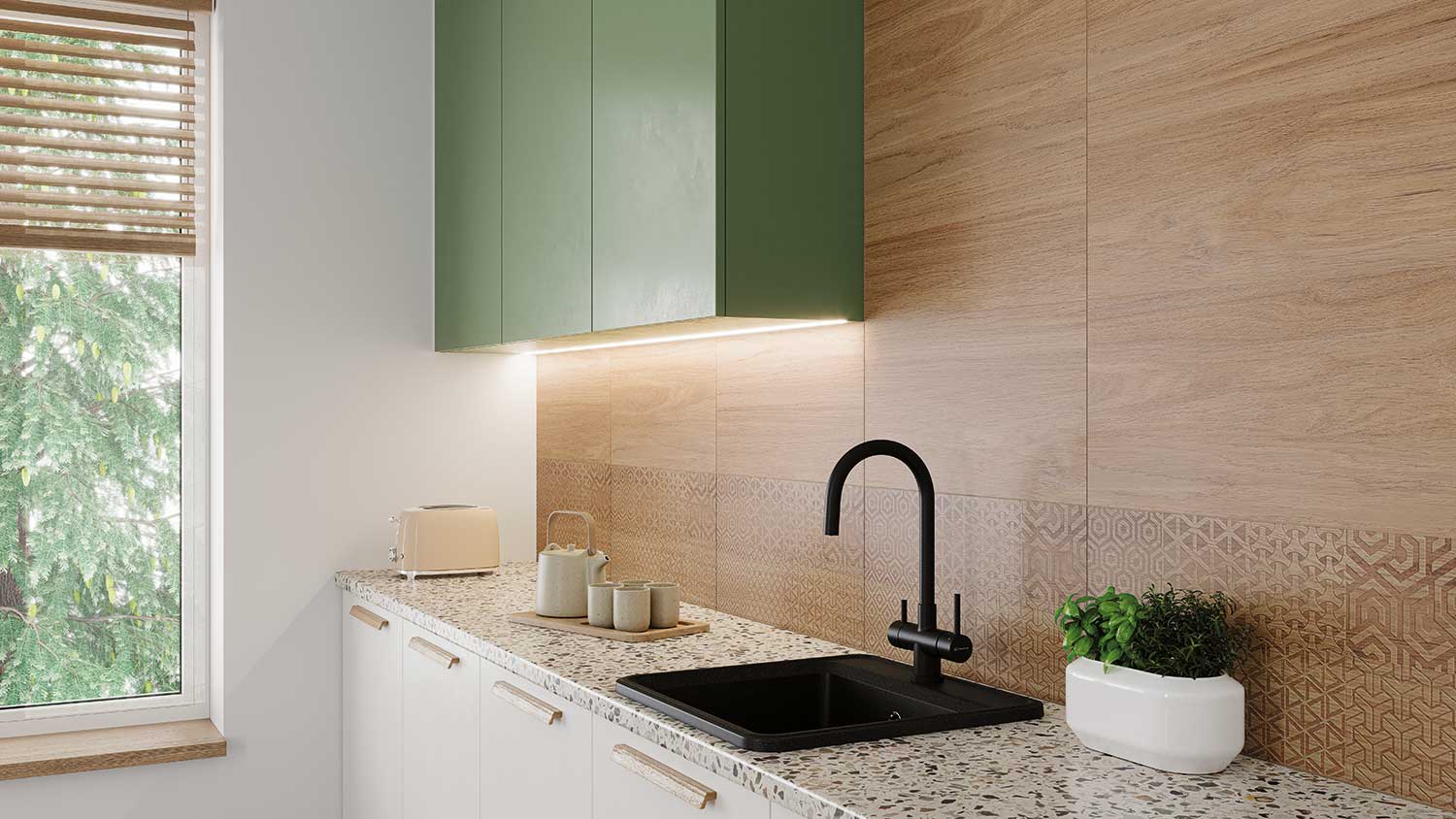 Obdélníkový obklad 30,8×60,8 cm v matně strukturovaném provedení přináší jemný dřevěný reliéf v hnědém tónu, který zútulní sprchovou stěnu i zástěnu za umyvadlem. Nelesklý povrch potlačuje odlesky a dobře ladí s bílou sanitou, betonem i černými doplňky. Vnitřní obklad, 8 mm – ideální pro čisté, přirozené kompozice v koupelně či kuchyni.